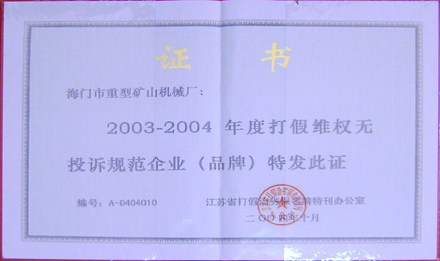 我廠是由原南通市海門礦山機械廠改制后的民營企業,是中國重型機械工業協會破碎粉磨設備專業委員會會員單位。占地面積35000多平方米、固定資產1100萬元。
